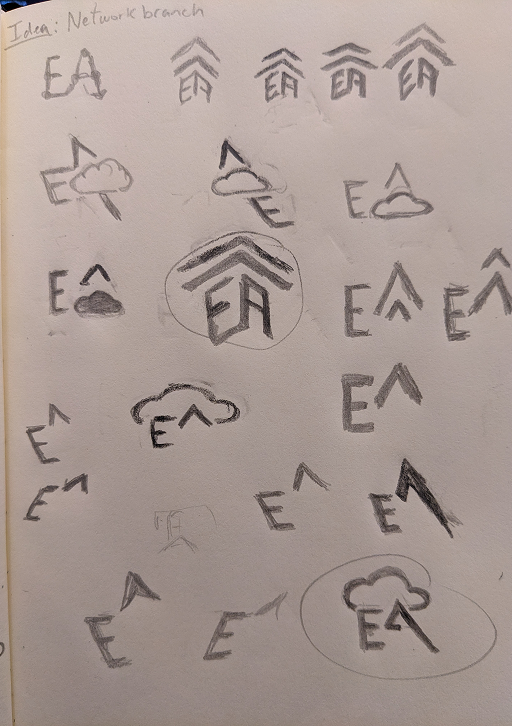 My sketches for ideation of the Enterprise Archive logoMis esquemas para la ideación del logotipo de Enterprise Archive
