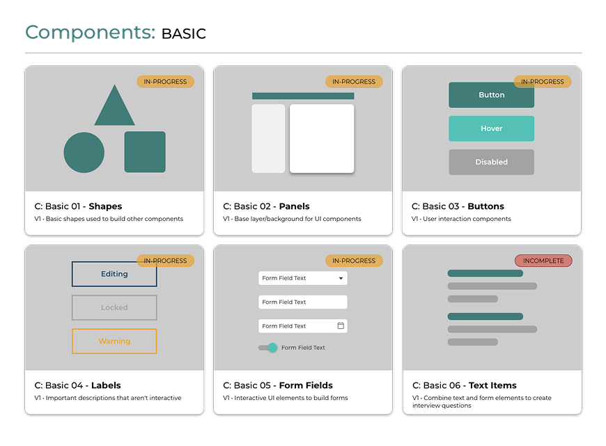 In parallel with the research, I led the creation of WealthCounsel's first comprehensive design system — aligning three cross-functional product teams around a unified UI language and interaction model.En paralelo con la investigación, lideré la creación del primer sistema de diseño integral de WealthCounsel — alineando tres equipos de producto multifuncionales en torno a un lenguaje UI unificado y modelo de interacción.