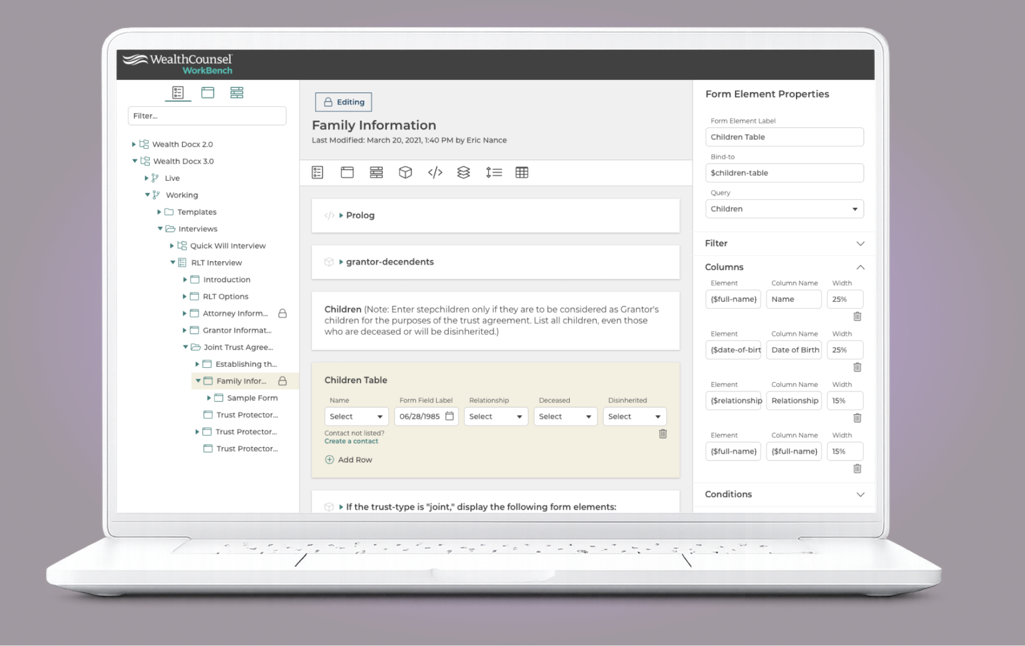 WealthCounsel provides software that helps estate planning attorneys draft complex legal documents efficiently. Their users range from solo practitioners to large firms, each with different needs and technical comfort levels.WealthCounsel proporciona software que ayuda a los abogados de planificación patrimonial a redactar documentos legales complejos de manera eficiente. Sus usuarios van desde profesionales independientes hasta grandes bufetes, cada uno con diferentes necesidades y niveles de comodidad técnica.